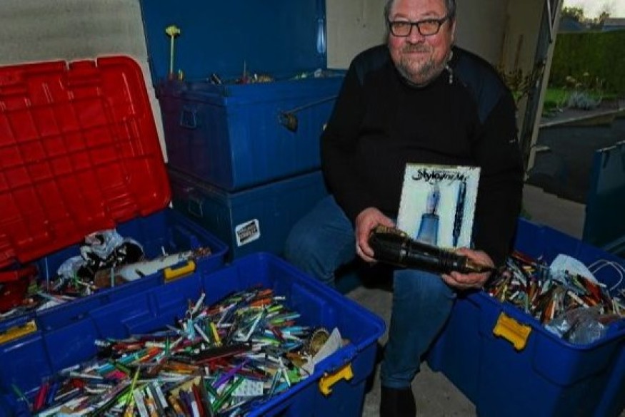 Son péché mignon ? Les stylos publicitaires.