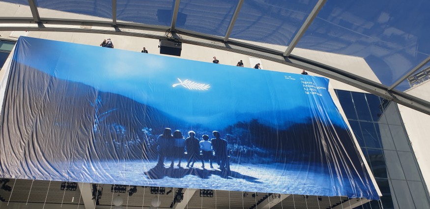 L'affiche du Festival de Cannes est accrochée sur une immense bâche en PVC sur la casquette du Palais des Festivals. Elle mesure 25 mètres de long pour 11 mètres de haut et pèse 140 kg. Il faut en général environ une heure aux techniciens pour l'installer.