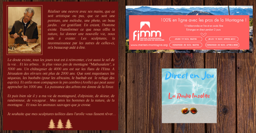Michel Verrier propose des sculptures traditionnelles, faites avec ciseaux et gouges dans du bois d'arolle, un arbre typique des alpes.